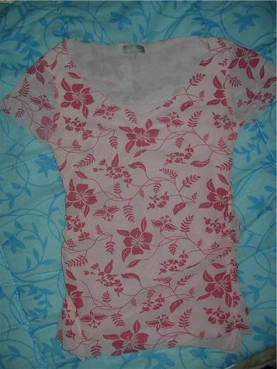 Petit haut a fleur rose, sympa et leger, taille M