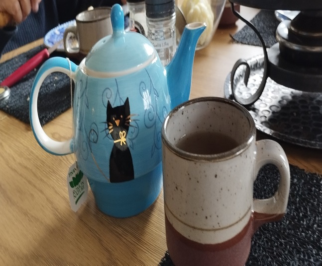 Les matins sont un peu frais, alors nous nous réchauffons avec des boissons chaudes.