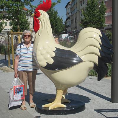Merci pour les photos que j'ai bien reçues, j'ai commencé de colorier une carte postale pour Jade.Alors les poules étaient lâchées dans Dax,maus tu sais, comme moi, qu'il y a longtemps qu'elles ne pondent plus !!!!!!! Merci, c'est un très bon souvenir notre escapade d'hier. !!!!! Bonne journée, ne reste pas trop au soleil, il est très mauvais !!!!