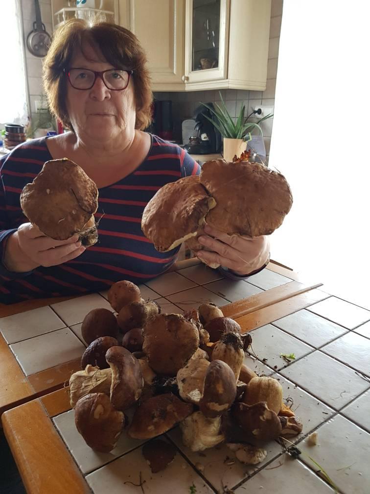 coucou les amies voici notre première cueille de cèpes de cet après midi 2kgs300 !!!