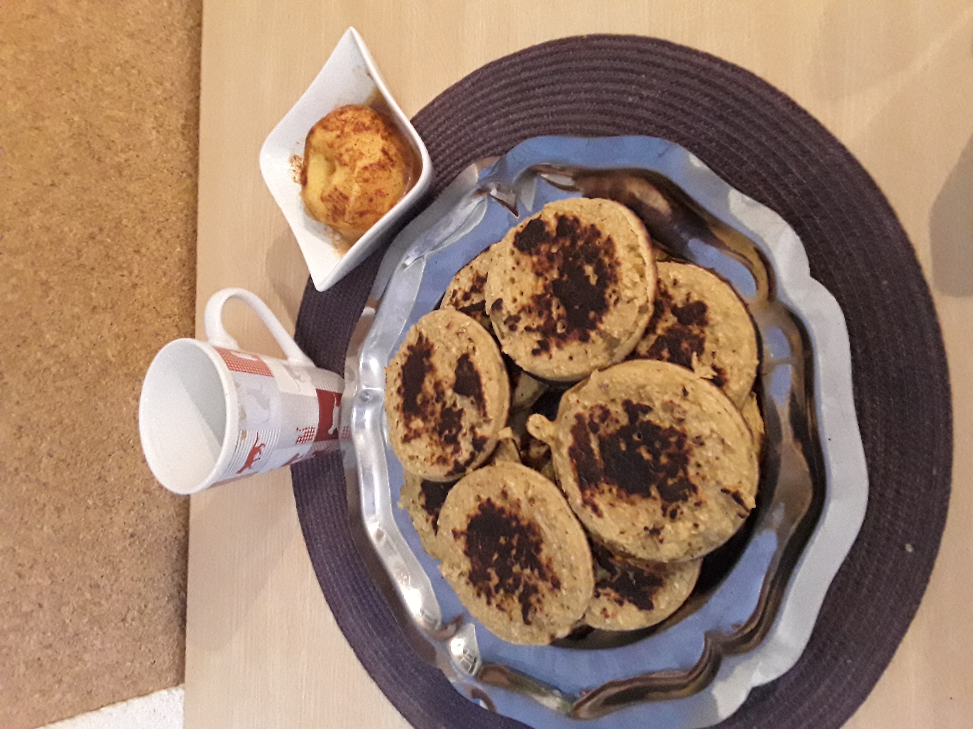 Soit pour 3 jours : 1 grosse crêpe ou bien 4 petits pancakes avec une compote de pomme.