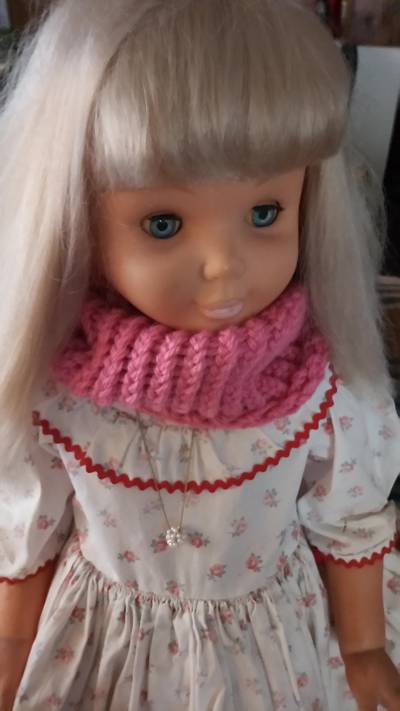 Oui, ce petit coin est pour chacune qui veut bien participer et développer des idées. Pour ma part je ne suis pas très lecture mais j'ai le livre qui contient toutes les fables de La -Fontaine ,et j'avoue que jamais on ne les a présentées dans les écoles c'est dommage car y en a de bien belles que je compte mettre en vidéo ça serait superbe. maintenant je n'ai pas le temps de lire,mais ,celui là,je veux le finir. Je vous en poserai si vous le souhaitez quelques unes et vous me donnerez vos impressions. Je vous pose des photos des tours de cou que j'ai envoyé à Déborah ,j'ai pris ma poupée Célia comme porte tricot elle a une taille d'un enfant de 2 ans,en fait j'en ai plein de poupées que j'ai habillé et d'autres pas encore. Ne vous en faites pas,chacune ici a le droit de dire ce qu'elle a sur le coeur dans la mesure ou ça peut apporter un plus au groupe.