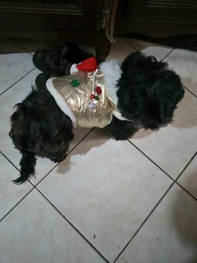le petit manteau offert par Christiane à Elbo . mais pas bon pour Gandy quand Il pleut il mouille et le Pauvre Gandy est trop gros pour entrer dans son manteau imperméable je vais essayer de l'adapter à lui. Elise je suis contente que tu profite de Mireille. Marierose ici aussi il pleut et c'est pour plusieurs jours. Je vous souhaite une bonne fin de journée,je viens de recevoir le colis de Sonia. Je serai plus heureuse si elle pouvait en faire un métier et vendre ses travaux ,elle le mérite Je vous montrerai quand le colis sera ouvert je vous embrasse Pierrette