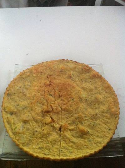 ma galette d'impro, faite avec 2 oeufs, de la maïzena, du fromage blanc, plein d'épices, du son de blé et d'avoine, et quelques noix de st jacques: