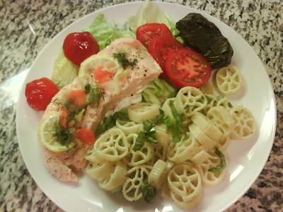 C'est du saumon cuit "steam" dans mon rice cooker -