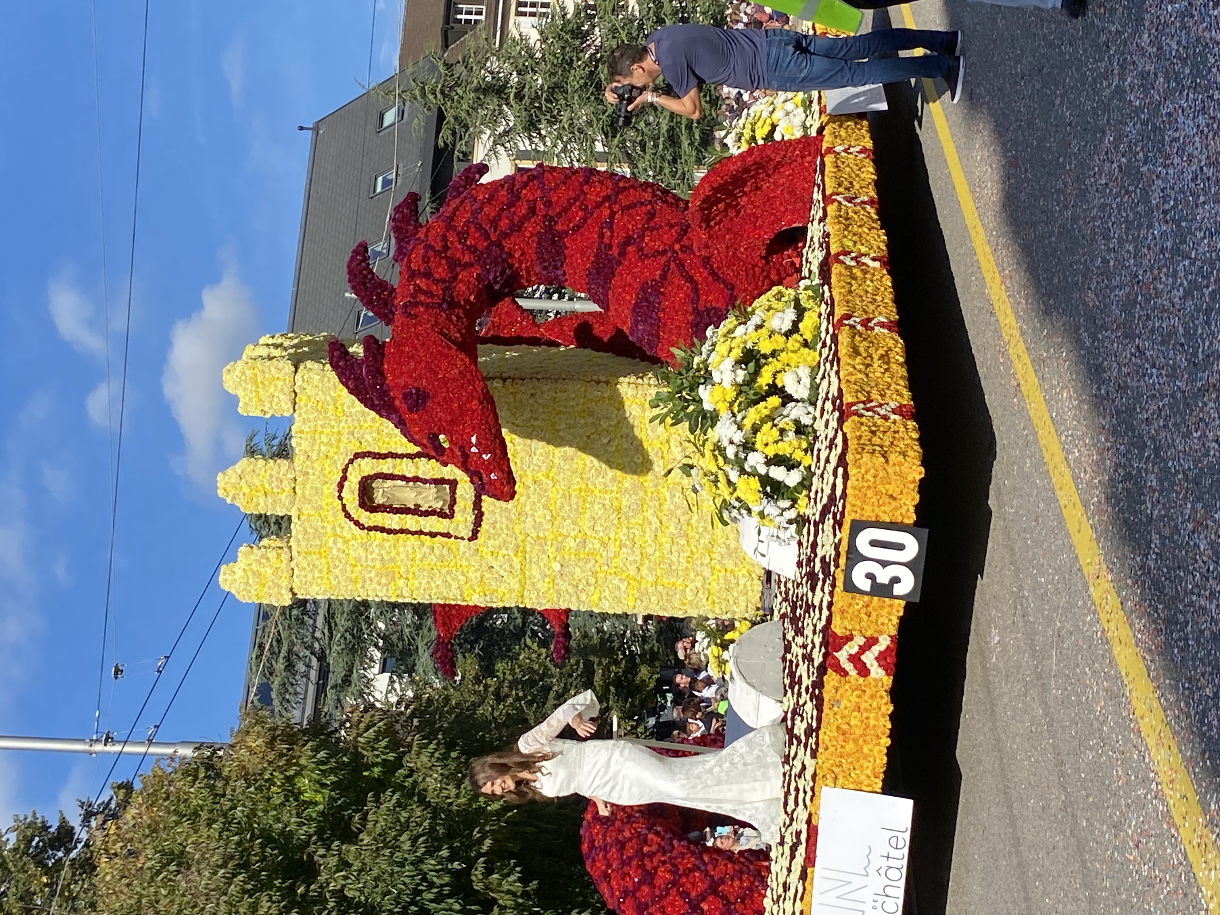 C'est encore un des rares cortèges fleuris avec des dahlias piqués un a un |