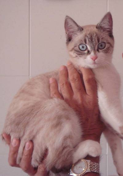 dans les mains de son maitre......oui elle a harnais et laisse car le collier elle sait l'enlever, j'ai fais des essais elle marche juste à côté de nous un peu accroupie mais ça va |