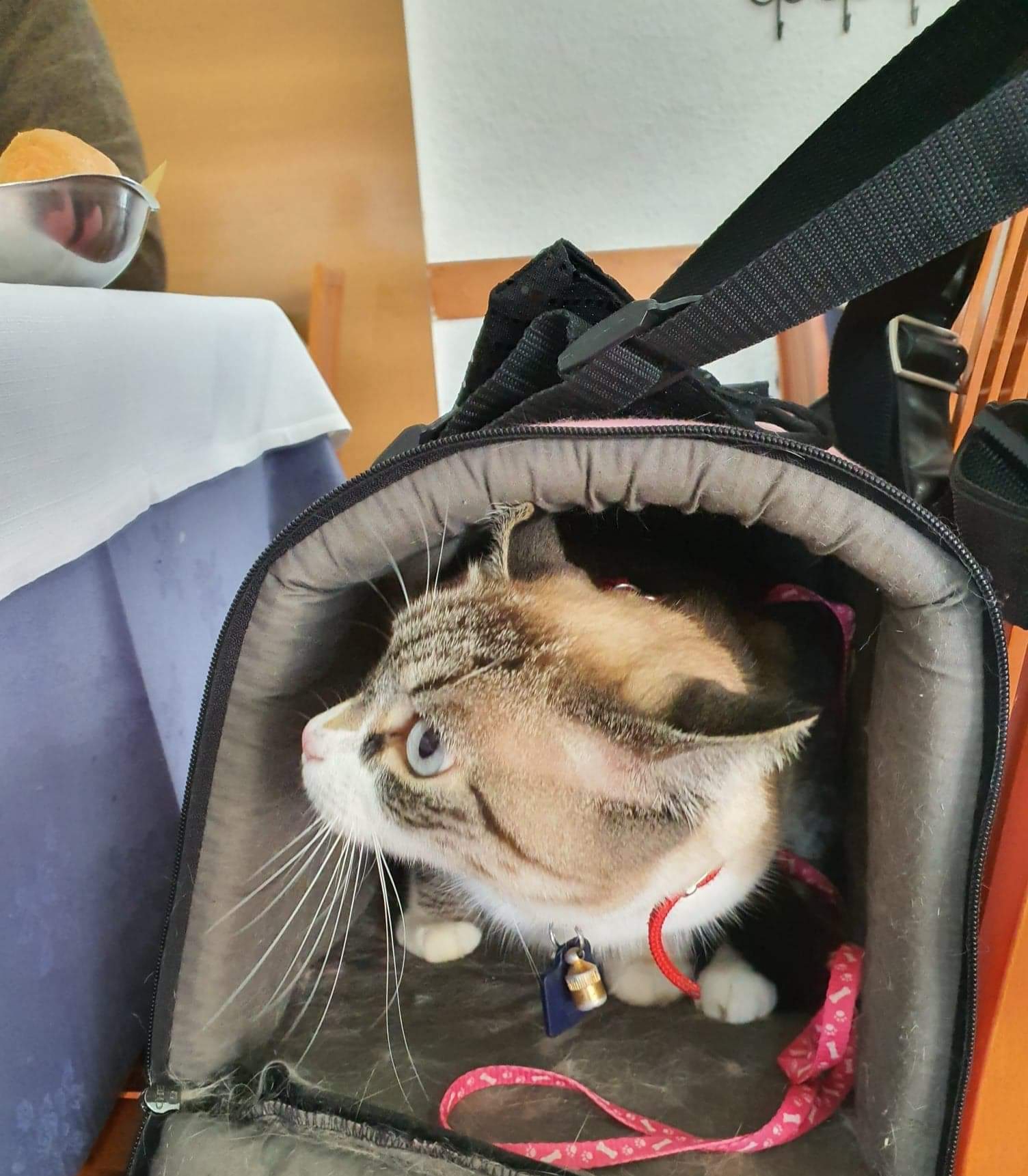 Question d'habitude, Limoux attend le matin que je lui attache le sien, collier sécurité anti étranglement, pour sortir ,comme ça elle a sa carte puce, son porte adresse et son grelot(pour prevenir la voisine qu'elle est chez elle) |