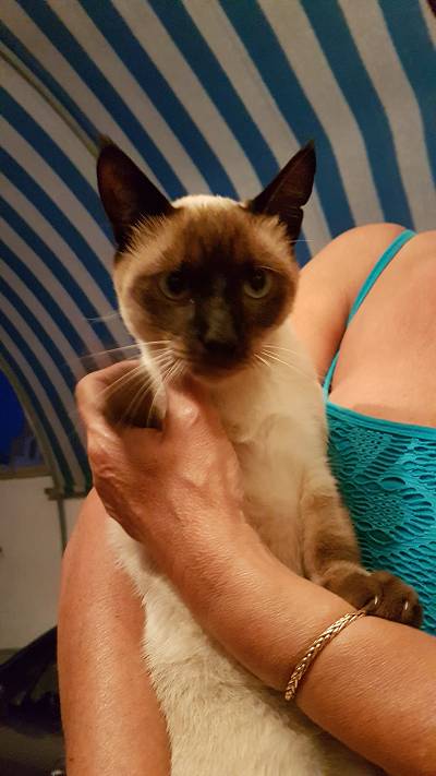 voici le dernier vagabond ramené par Limoux et Tire Bouchon...gentil et aussi collant ........commme les maisons de vacances se sont vidées les animaux que ces gens prennent pour jouer restent sur place.... il y a de tout chiens chats serins perruches.... les chats ont tendances a atterir chez nous....à cause des croquettes !!!! |