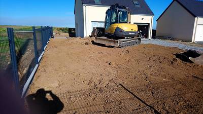 Il termine les clôtures aujourd'hui et a bien attaqué le terrassement.