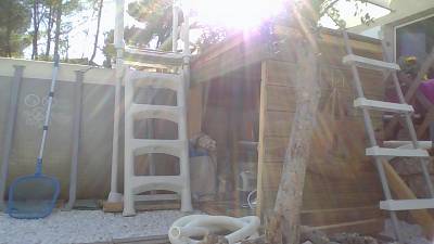 Oui le ponton est terminé , c'est aussi l'abri à moteur et on y a rajouté les produits d'entretiens piscine qui traînaient un peu à droite / à gauche