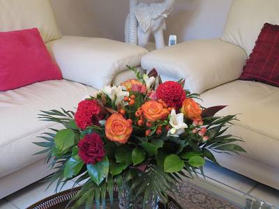 Bonjour, temps affreux, vent, pluie très fine, pas envie d'aller dehors sauf pour prendre le journal dans la boite aux lettres; Bien dormi, et pas d'incidence de la nouvelle heure. Pour midi, salade de betterave rouge, 1/2 magret de canard, et (j'en avais envie) purée maison, 1 clémentine, mais pour la fin de l'après midi, je me ferai une petite tarte aux pommes-cannelle, avec mon thé. Hier bonne journée avec mes amis, mais leur présence un peu écourtée, car ils n'avaient pas amené leur petite chienne, et ils ne voulaient pas la laisser enfermée trop longtemps. Ils m'ont bien gâtée, non seulement invitée au resto, mais ils sont arrivés avec un magnifique bouquet...ci joint. Bon dimanche au chaud. |