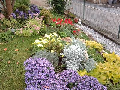 Bonjour bonsoir, Ici c'est Pachtou, 8 ans de plus que choupette !!!, 1 fille à 250 Km que je vois seulement 4 ou 5 fois par an, quand il y a vacances ou grands wee-end. Pas de petits enfants, la nature en a décidé ainsi. L'automne officiel est dans quelques jours, mais aujourd'hui je trouve qu'il est déjà là, avec vent, pluie, et bien sur feuilles qui commencent à joncher la pelouse ; malgré tout comme sur la photo encore pas mal de fleurs dont les verveines des fenêtres qui fleurissent comme des folles. Tout à l'heure j'irai m'arracher une belle batavia dans le jardin. le souper sera un peu plus conséquent car à midi, rien mangé, n'étant pas chez moi. Pour l'informatique, surtout pour les mails, tout ce qui me paraît suspect, inconnu, comme des messages apparemment personnels , venant de banques auxquelles je ne suis pas affiliée, je n'ouvre pas, je ne lis pas, c'est direct la corbeille. Et même si ce sont des messages qui laissent penser qu'ils viennent de ma banque, rien qu'à la lecture du texte bourré de fautes de syntaxe, de grammaires, etc...on voit que c'est de l'arnaque. Je vais retourner à mon tricot, bien tranquille avec la télé, je n'aime pas avoir les mains vides. Bonne soirée, et bon dimanche.....pluvieux pour nous ici. Encore une photo de ma région