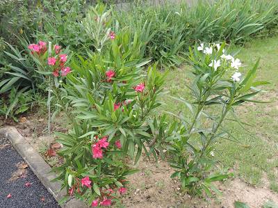 une petite partie des lauriers-roses le long de mon chemin  - des boutures que j'ai faites avec les branches que j'ai rapportées de mon périple jusqu'à  Sète il y a 2 ans