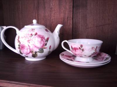 Bonjour les Minettes, Floreline jolies photos de Lola, et comme tu le dis, son comportement est en très grande partie le résultat de l'éducation donnée par ses parents, bien différente de celle donnée par Véro....Oui, grand trajet pour A journée, mais....POSITIVE !!! ce sera aussi pour le bien de Lola, elle a besoin de retrouver ses copines de classe et de participer au spectable, la pauvre, on ne peut pas tout lui supprimer. Oui on a un nouveau président !.... j'ai entendu ce matin l'avis d'une femme qui le connaît bien depuis très longtemps et qui parlait de sa personnalité et des ses comportements !!...C'est curieux, j'avais l'impression de reconnaître quelqu'un Gigi la vision de Chaumont me rappelle de bons souvenirs ; Michèle, d'accord avec toi pour les fleurs et les hommes !!!! Mounette apparemment tout s'est bien passé et tes jambes vont bien mieux, un soulagement pour toi. Il fait gris mais ne pleut pas, c'est déjà bien ; des vide greniers annulés hier et reporté à aujourd'hui, mon petit tour est fait. Trouvé 2 jolis mugs en porcelaine anglaise (coco même décor que ma théière et mes deux tasses avec les roses que tu aimes), intacts dans leur coffret, ....2 €, Didine j'ai pensé à toi, car sur un stand j'ai vu à peu près la même lampe et sa colonne que celles que tu as dans ta chambre. Bon les minettes, direction la cuisine, au menu (pas JMC, mais une exception) petite andouillette grillée au chablis, avec légumes de saison. Le soleil arrive, chic. Bon lundi les filles.