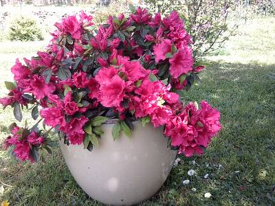 re coucou chez moi toujours ciel bleu et soleil pour l instant mais sa va se couvrir beau azalèe patchou je suppose que tu le rentre moi aussi géranuims et supension de surfinia dans la buanderie nouche moi je goute jamais l après midi faut manger du consistant le midi légume et féculent surtourt ce midi foie de veau avec poèlès de légumes surgelès de temps en temps mais le soir je prends mon bol de soupe bien épaisse tôt 18h et oui l;avantage seule ont en fait a sa guise michèle des physalis j;en ait dans un parterre ça gele pas bonne anniversaire de mariage a vous deux |
