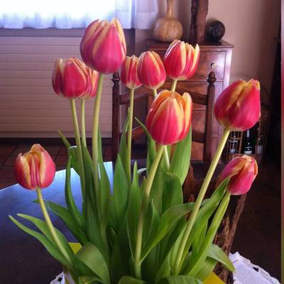 Heureux et joyeux anniversaire Gigi, en espérant que ta copine t'oublie au moins aujourd'hui. Ciel gris pâle, mais température douce. Oui Martine je me suis lâchée, si on peut dire, car c'était oligatoire, mais le pire reste à venir !!!J'espère qu'il ne pleuvra pas aujourd'hui avant que j'aie planté, je vais essayer de faire ça ce matin. Didine je les plante dans des gros pots que je peux mettre un peu à l'abri, on verra bien. Pour le reste c'est vivace. J'aurais été curieuse de voir hier soir le montant de la recette de la jardinerie !!! direction salle de bain, il ne faut pas que je traîne, vous relirai tout à l'heure. bon petit déj. à toutes en attendant.