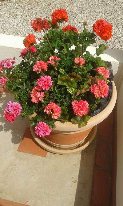 bonjour les filles il pleut encore par chez nous grrrr j ai du monde ce midi le carrelage !!!! les géraniums d olga sont magnifiques on voit la différence de climat les miens tout étant très bien partis sont loin d être comme ceux -ci en boutons quand même mais au ss sol le sac est très beau les anses en corde lui donnent un chic PARISIEN floreline profites bien de ta semaine de tranquilité avec tes menus comme tu aimes et espérons pour yohan une lueur positive et non pas de jadinage cette semaine ou est le soleil ? oh bien la blague olga bon je vais à mes fourneaux je vous souhaite un bon dimanche