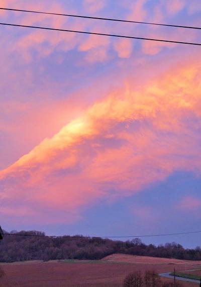 Bonjour à toutes, Lise réveillée à la même heure, mais levée seulement vers 6 h 45. J'en ai profité pour faire des photos du ciel que je trouvais très beau. Maintenant c'est gris plombé, il fait 6° et nous aurons sans doute la pluie avant cet après midi. Tant mieux si tu as trouvé un restaurant convenant à tous. Notre rando est maintenue, mais si on veut trouver de la neige, il faudra reprendre les voitures pour aller un peu plus haut et de l'autre côté de la frontière. Coucou Mana !! A part sortir pour l'achat de bricoles pour demain, pas envie de faire grand chose, l'ambiance nationale me déglingue le moral, quant au physique.....le dos a besoin de repos. Je vous mets les photos, et vous lirai plus tard.