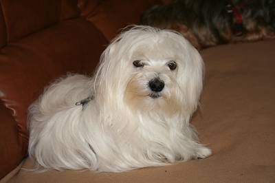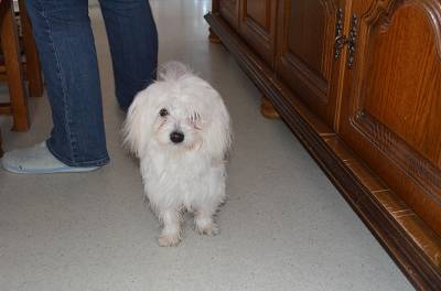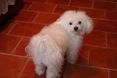 Son deuxième frère GIBSON Puce est un bichon FRISE ; Fox est bichon MALTAIS et Gibson est coupé Frisé/Maltais car le père est Frisé et la mère Maltais. |