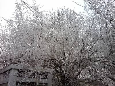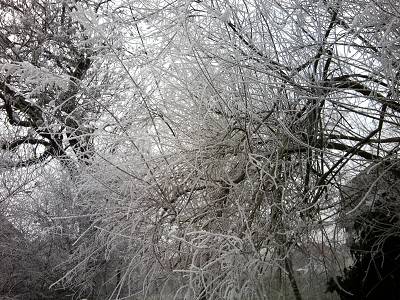 Bonjour les Filles, Comme chez toi Nouche, un voile blanc sur les jardins. Hier soir en rentrant de la cérémonie des voeux, sur la route ça faisait de la gélatine gluante. Y suis allée et revenue en chaussures plates, mais avec "les talons" en réserve que j'ai pu enfiler au vestiaire. Pour l'instant les flocons retombent, mais les routes sont salées et raclées j'ai entendu les engins vers 5 h du mat. Toutefois je sais que sur certains tronçons de la route que je devrai emprunter mercredi.....sont pour l'instant difficiles....je devrai suivre l'évolution de près. Gigi que de péripétie pour rejoindre Paris, mais l'essentiel est que vous soyiez bien arrivés, et heureusement qu'une fois là ton mari ne s'est pas blessé en tombant. Il y a encore beaucoup de gens en Picardie qui n'ont pas d'électricité, accès difficile dans certains endroits pour les techniciens qui font le maximum. Floreline, une bonne nouvelle pour Yoan et sa famille, ils vont pouvoir être à nouveau ensemble. Certes l'erreur est humaine, mais à ce stade.....c'est difficilement acceptable. Pour le lustre, plus je le regarde, plus je me demande si je ne l'ai pas vu exposé il y a quelques années au Centre Pompidou de Metz ? Bonne journée les filles prenez soin de vous. Zizou bon rétablissement. un tamaris en face de chez moi |