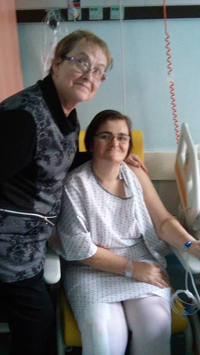 coucou les maminettes je reviens de l'hopital central de nancy ou je suis allée voir zizou elle etait contente de ma visite surtout que l'on est en vigilance orange je ne suis pas reste trop logtemps avec elle ,elle avait son mari et son fils frederic present ,il est venu au devant de moi a l'hosto car j'avais telephoné a zizou en arrivant pour lui demander ou elle se trouvait ,etant seule avec lui je lui ai glisse a l'oreille que sa maman aura besoin d'aide il m'a promis qu'il le ferai enfin on verra je lui ai dit tu as une maman formidable tache de la garder longtemps a part ça je l'ai trouvé bien pour une personne opere d'hier son fils nous a pris en photo je vais essaye de vous la mettre bonne soirée a toutes et gros bisous |