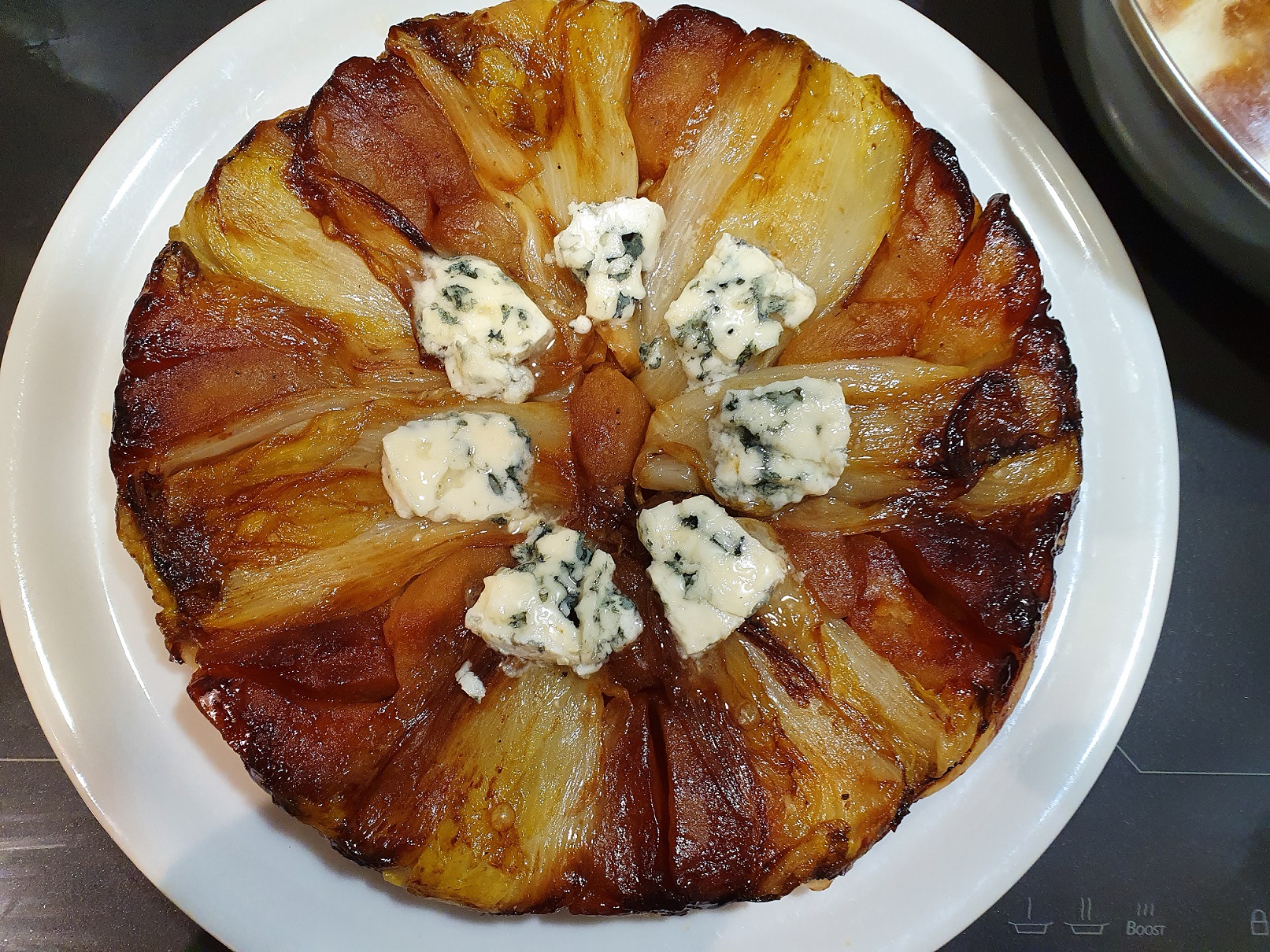 Au fait Pachtou, pas de fourme d'ambert, remplacée par du roquefort. Je savais que j'avais du bleu mais pas lequel.....