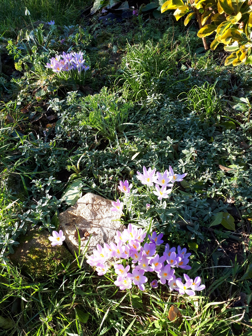 Coucou les amies! pas eu le temps de venir ce matin, j'ai terminé mon repassage commencé hier mais interrompue par des coups de fils... Super beau temps, on est allé faire une tite balade, puis je suis partie faire quelques courses, et passée à la pharmacie récupérer ce qui manquait hier. MARTINE, de tout coeur avec toi COCO j'ai du stopper aussi le karcher, les 2 porte-fenêtre étant en plein soleil, pas grave ça attendra, PAT, j'ai fait un ti tour dans ma rocaille, les crocus sont superbes ,le bergénia en fleurs lui aussi, j'ai même quelques perce-neige, que je n'avais pas planté,?? mystère. Vivement que j'aille y faire le ménage. Bonne soirée à vous toutes , coucou à celles que je n'ai pas nommées. bises