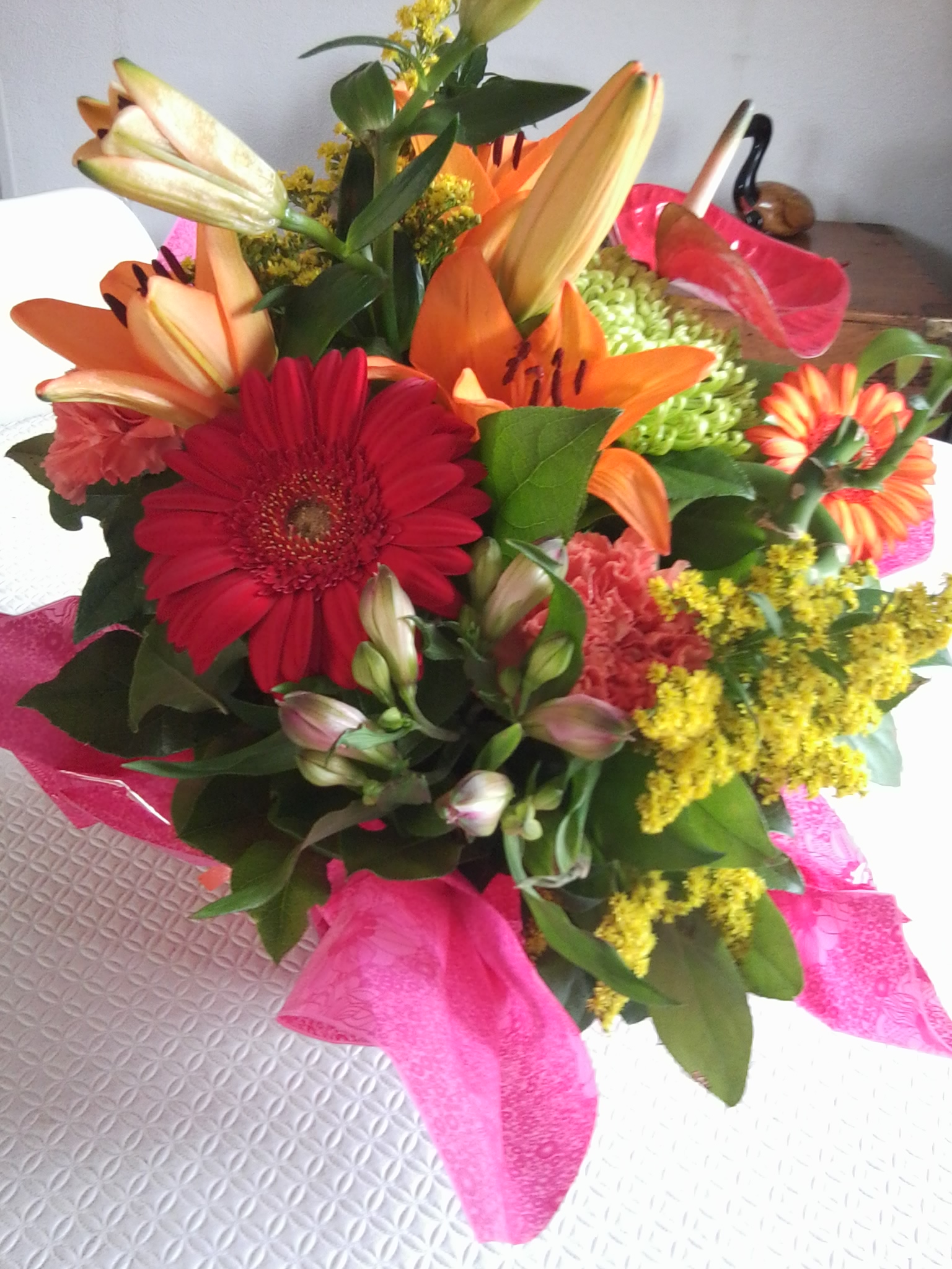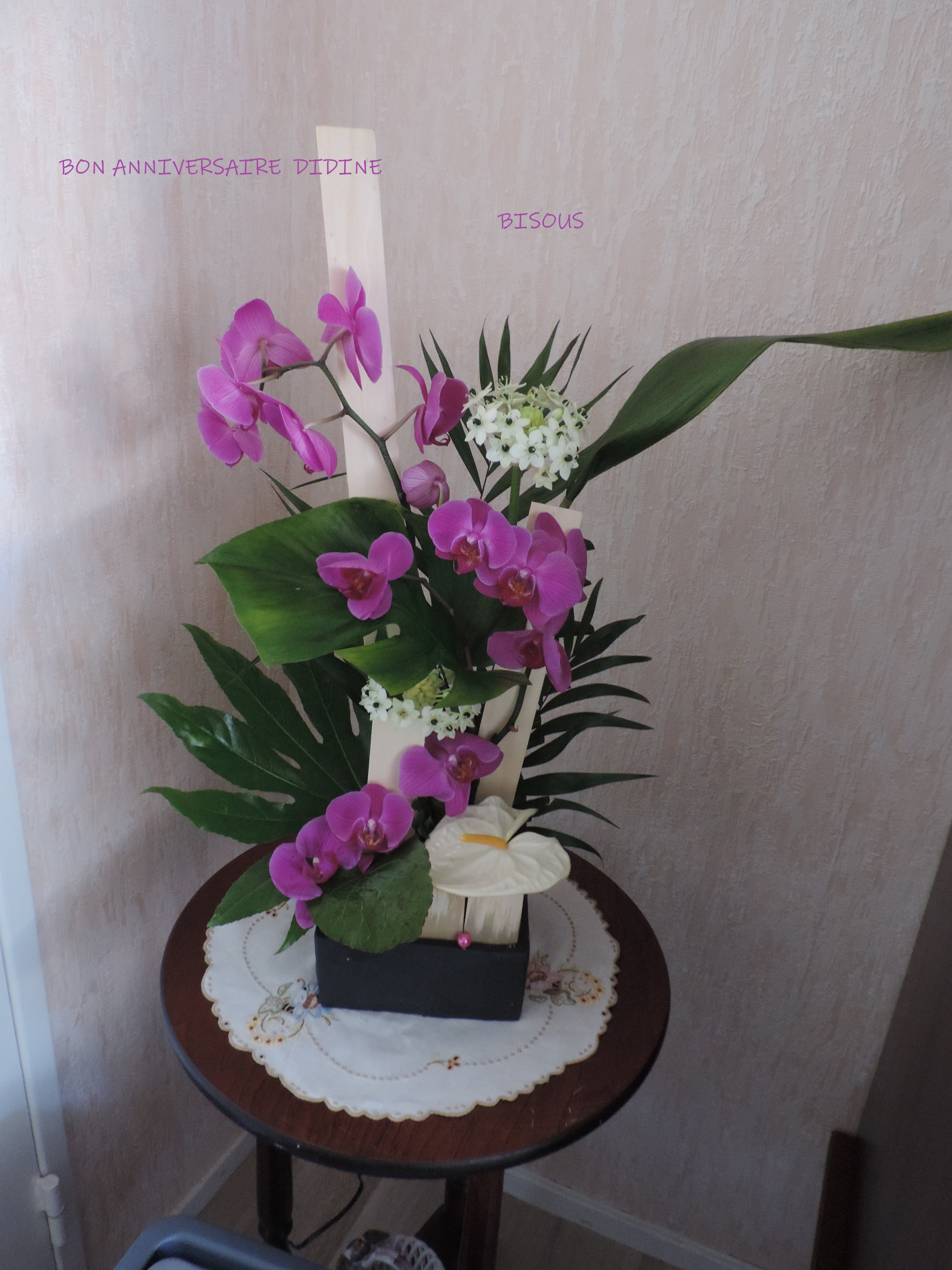 bonsoir j ai dit a pierrette cet après midi les copines pas sympas ils m ont oublier je pense que c est martine qui a été perturber bon c est pas grave j ai même dit a pierrette ça m étonne que lise ait oublier bon c est vrai l ont pensez pas a tout livraison d une énorme corbeille de fleurs de pierrette bonne soirée et merci nouche BWA ET LISE |