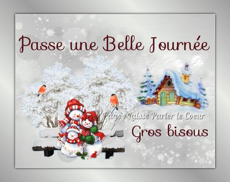 Bonjour les filles Message commencé ce matin mais interrompu par la factrice et passé.... aux oubliettes pour préparer le repas Je disais donc que je suis épargnée par rapport à vous toutes, pas de neige ici, le verglas est déjà bien suffisant... un peu de bleu dans le ciel ce matin mais vite viré au gris en attendant la pluie sans doute ce soir ou demain.... attention peut-être à la glisse..... Chez mes enfants, 10 cm chez Philippe en télé-travail ainsi que Sophie avec ses étudiantes ; il me disait que pour Mathieu c'était presque l'été par rapport au Canada donc direction le Centre de Recherches pédibus-jambus. Adrien en télé-école - Idem pour Maxim dont les parents sont tout de même partis au boulot..... VIVE LE SUD-OUEST BWA, un gros bisou à ton Michel pour son anniversaire, allez, pour le retard je double la mise NOUCHE, un bisou également à Michèle LISE, en panne de clients, pas grave, vu le temps le repas se conserve et sera prêt pour leur retour Des coups de fil à passer..... Bonne fin de journée à toutes