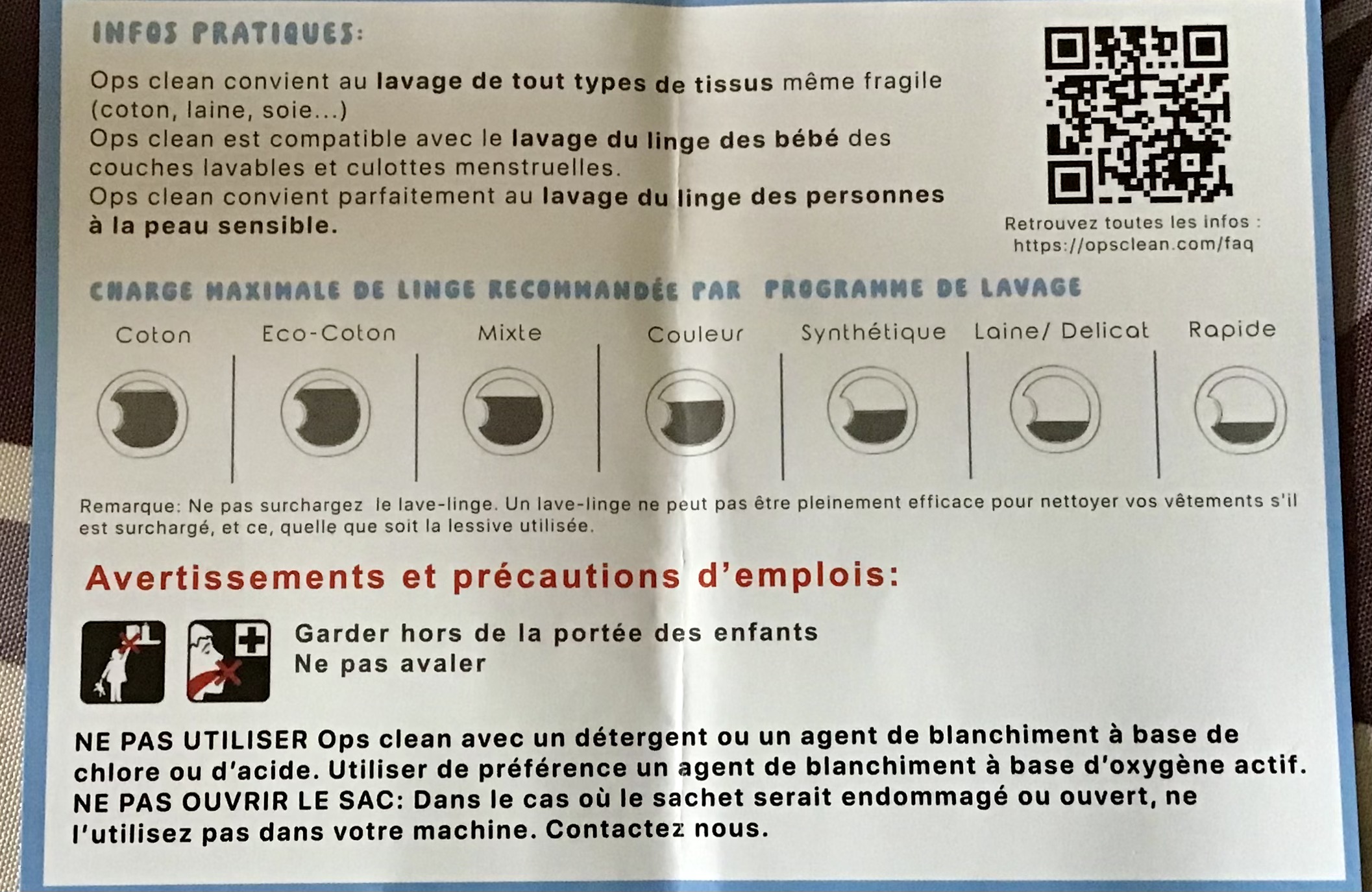 "OPS" Je viens de recevoir mon sachet de lessive réutilisable il s''agit de petites billes dans un sachet que l'on utilise pour laver son linge et qui peut être réutiliser 350 fois. Se sont deux français qui ont développé la formule, ma fille et ma belle sœur n'utilise plus que ce produit. (Voir plus d'info sur internet.