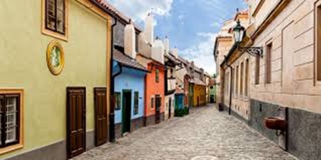 la "ruelle d'or" car dans les temps anciens, il y avait beaucoup d'artisans qui travaillaient l'or, et les pierres. en bleu la petite maison où a habité Kafka. |