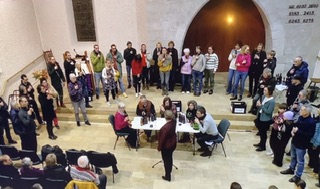 Bonjour les copinettes, Il fait froid, peut être un petit rayon de soleil cet aprem, pourquoi pas!!! Ce soir concert de l'orchestre de Neuchâtel qui accompagnera Gauthier Capuçon, pour le mériter il faudra "monter" à la Chaux-de-Fonds et par ce temps!!!! Hier, routine, je n'ai pas mis les pieds dehors. Maintenant j'attends le technicien pour le lave vaisselle qui ne vidange plus, que va t il me dire, ...... GIGI, ta glu ne s'arrange pas,en plus les medic tardent à venir. NOUCHE, connaissant un peu Nancy je m'imagine la peine de trouver une place de parc. Dommage, car je suppose que le sapin magnifiquement décoré domine la place Stanislas. PACHTOU, autant rester au chaud que d'aller marcher au froid. BWA, tu cours, mais tu prends toujours un moment pour nous écrire. CHOUPETTE, tu trouveras bien une occupation. MARTINE, oui ces téléphones qui sentent l'arnaque c'est vraiment agaçant et dangereux pour certains, certaines. LISE, Finito le jardinage, plus de batavia. COCO, Ta petite file au taquet en vue de Noël. Vous le mééritez bien. DIDINE, tu as raison il faut aérer les neurones. Photo du concert de l'orchestre des bouteilles prise dans le Temple de Peseux. J'aime beaucoup la simplicité du lieu, et comme l'église n'est plus tutilisée tous les dimanches, elle sert aussi à des concerts, et m^me pour la répétition des choeurs de la région, C'est là d'ailleurs là que nous répétons une fois par mois. Bonne acoustique, et depuis que les bancs ont été remplacés par des chaises confort maximal. (Avec ou sans regret pour certains) |