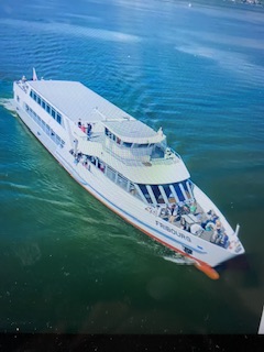 Bonjour les copinettes, Belles journées et moins chaudes.. Hier en promenade au bord du lac. Mon intention faire une bonne marche, mais je vois à quai le bateau promenade, pourquoi ne pas le prendre? J'arrive trop tard il largue les amarres et part, haussement d'épaule de ma part et voilà que le capitaine me fait signe et stoppe son bateau, les deux matelots amarrent , redéployent la passerelle. Je monte à bord avec en plus le salut du capitaine. Jack ne savait pas que sa femme pouvait faire stopper un bateau de la société de navigation. Il fait si beau, j'en profite un max. Jack ne m'accompagne pas toujours tout dépend de son genou qui le fait trop souffrir ou pas. Bonne journée à toutes et bon 14 juillet. |