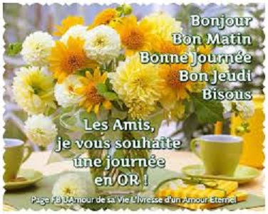 Coucou BWA, JOSS, MOUNETTE, DIDINE, MARTINE, bonne journée à toutes, cette fois je suis à jour, je sais que nous sommes bien jeudi....
