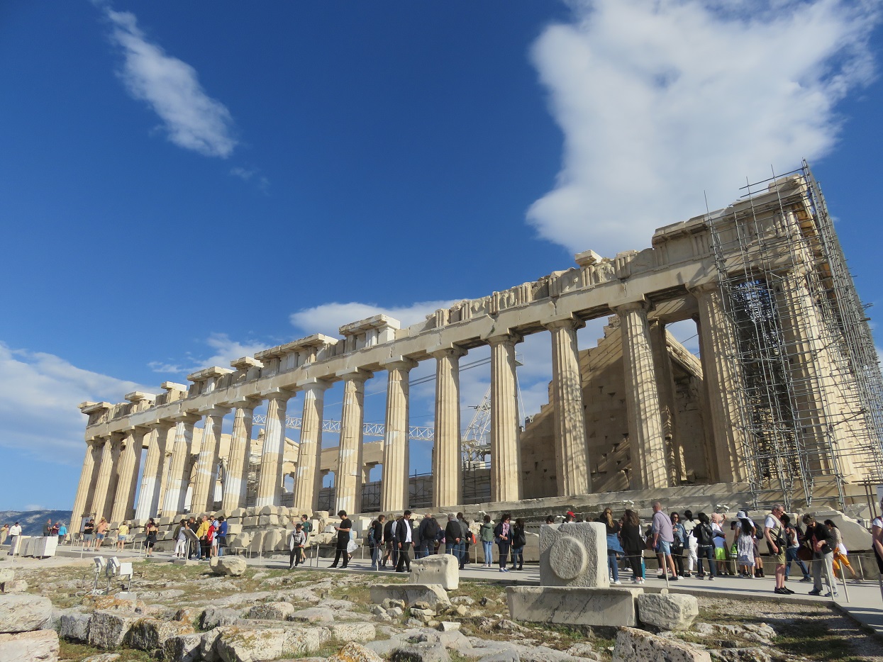 Bonjour les filles, Ici aussi pour l'instant grand ciel bleu, soleil et pas encore de vent, qui était très pénible hier. DIDINE moi aussi Damart léger, pull, écharpe et petit manteau doudoune. Jamais la permutation des vêtements hiver-été n'a été aussi tardive.....et même toujours pas faite Hier après midi chez mon autre horticulteur, circulation facile entre les plateaux de plantes, bien rangées, par catégories, etc... donc achat de mufliers, chalibrachoas, verveines retombantes, géraniums lierre, pour les sunpatiens j'y retournerai en début de semaine prochaine, car hier pas encore fleuries pour voir la couleur.... Tout à l'heure Jardiland pour des sacs de terre et anti limaces. Cet après midi, si possible un coup de rotofil dans mon herbe !!!! après j'espère y voir plus clair. GIGI comment a été la nuit avec le nouveau lit ? LISE je souhaite que ton souci de tondeuse soit plus vite solutionné que le mien.....COCO moi aussi depuis 2 jours, même avec le chauffage qui continue un peu, j'étais gelée......J'ai posé certains de mes petits pots achetés hier dans mes jardinières....vides de terre jusqu'à cet après midi ; et bien rien que de voir des fleurs derrière les vitres, ça m'a un pru remonté le moral. coucou aux autres Minettes, et bonne journée à toutes. Je vous mets un petit coup de musée de l'Acropole |