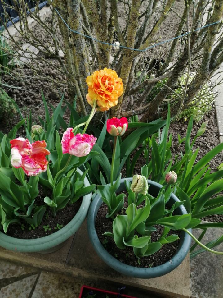 re pendant que j'ecrivai martine et didine on poster pour ce qui es des hirondelles didine hier soir avec robert ont a admirer un veritable ballet qu'au moins une dizaine d'hirondelles faisait au dessus de notre jardin robert travaille sa terre alors hier elles se pouillaient j'ai essayé de les prendre en photos mais ça n'a rien donne elles sont trop rapide et mon smartphone pas perfiectionné ,par contre j'ai pris en photo que je vous joint des tulipes perroquet et une tulipe dont on ne sait plus le nom mais elles sont magnifiques |