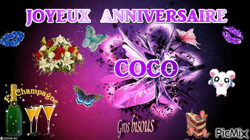 Re J'ai falli oublié :" Bon anniversaire "à toi Coco, une bonne journée remplie de soleil et de joie. Gros bisous. |