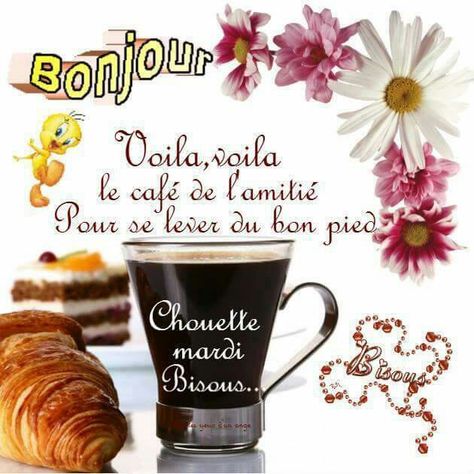 BOUJOU les Copinettes Pas de petit dèj sur la terrasse ce matin, le jour manque mais la température est bonne. BWA j'espère que ta nuit a été meilleur et que le médecin a trouvé de quoi apaiser Michel. Coco merci pour ta carte, une de plus pour ma collection Bonne journée à vous toutes. |