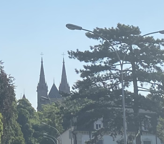 Bonjour les copinettes, COCO, pas de chance pour ta fille, ce n'est pas anodin, comme c'est le cas de Assia. Heureusement qu'elle a pu enfin avoir des conseils d'un medecin en ligne. Une chose est importante est de signaler ce qui lui est arrivé à son medecin pour faire des tests d'allergie et qu'en cas il lui prescrira soit des antihistaminiques ou un kit prévu à cet effet à avoir toujours dans son sac. J'en sais quelque chose ma fille Diane et moi m^me sommes allergiques, j'ai toujours des antihistaminiques dans mon sac. Une fois en urgence chez mon medecin une autre fois aux Ugences, à l'hôpital, j'étouffais. Jack lui s'est fait régulièrement piqué mais c'est comme une piqure de moustique. Chacun réagit de manière différente. Hier matin petite descente à pied en ville à la fraiche, fait le tour du marché et pris le bus pour le retour. Me dégourdir les gambettes c'est tant nécessaire pour remettre en place mes articulations. La semaine prochaine reprises de répétitions, trois œuvres importantes pour l'hiver prochain. Quelques beaux concerts d'abonnement prévus aussi pour cet automne. Diane sera là pour midi. Elle aide son papounet pour maintenir propre les alentours de la maison. Photo sur le chemin de la ville j'adore la silhouette de notre "collé) |
