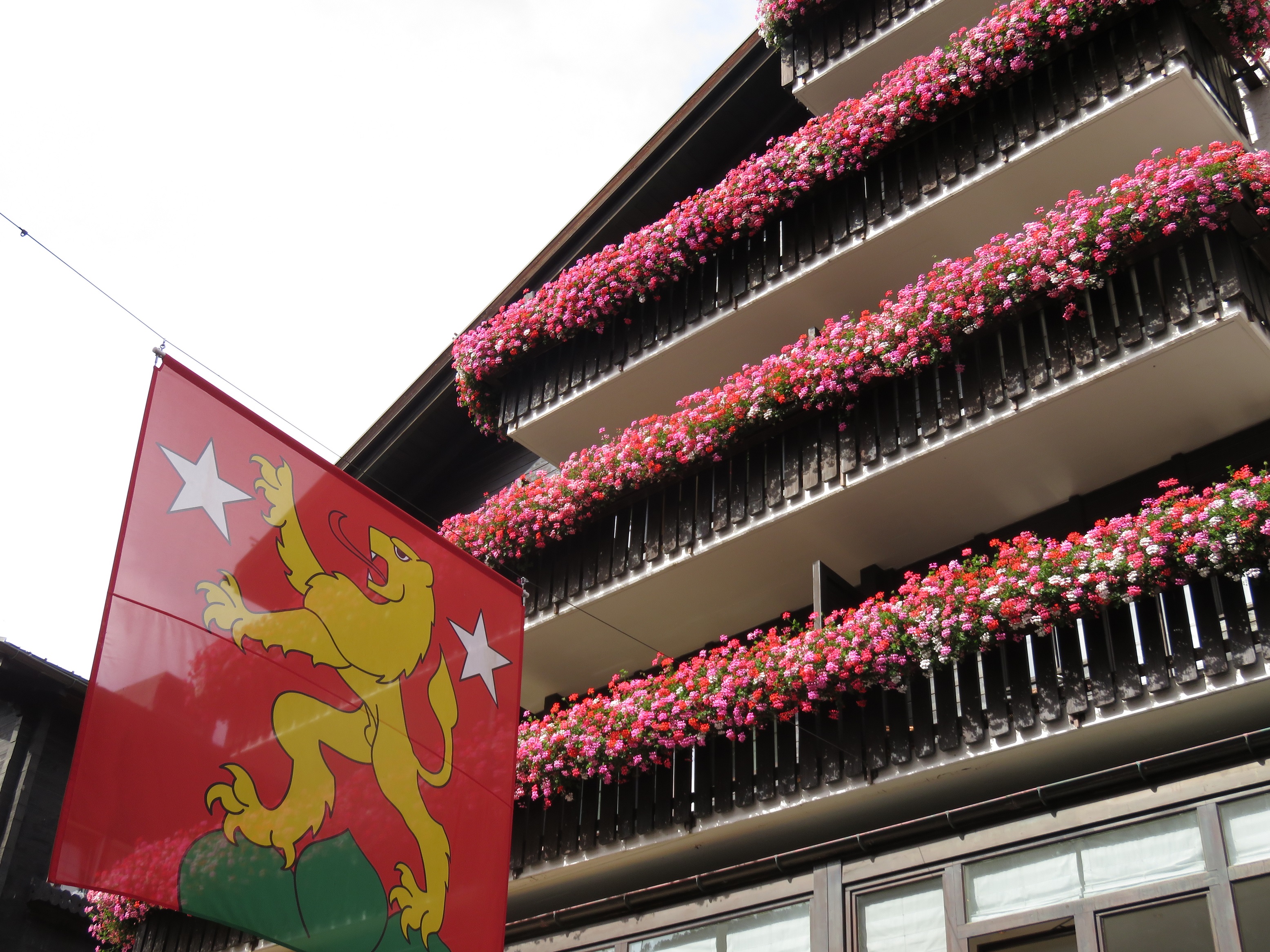 Bonjour les Minettes, toujours beau temps ; MARTINE pour toi aussi le retour, et tout est déjà en ordre. GIGI, ta glu est rentrée de vacances aussi, elle ne part jamais bien loin. Tout à l'heure je vais aller voir un des plus grand vide-grenier de l'automne. Avez vous vu les 2 photos au bord du Léman, le jour de notre départ ,que j'ai mises hier soir. Le coin toujours aussi beau. rien de particulier à raconter. Je vous mets le Cervin tel que je l'ai vu, un peu encapuchonné, sous le ciel gris, et la façade d'un immeuble dans la rue principale de Zermatt. Bonne journée à toutes. |