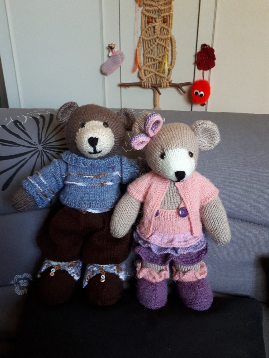 hier je ne suis pas montée à l'étage bien trop chaud j'ai descendu mon ouvrage et j'ai "travaillé" avec le ventilo. Mon Ours Roméo a enfin trouvé sa Julietteheart qu'est-ce-que je me régale à les faire. Dès que la chaleur va partir vers d'autres contrées, je vais me mettre à la couture, d'abord quelques réparations à faire, puis je vais essayer de liquider mon stock de tissus en faisant des sac/cabas, comme vous voyez, je ne suis pas en manque de projets et d'idées.