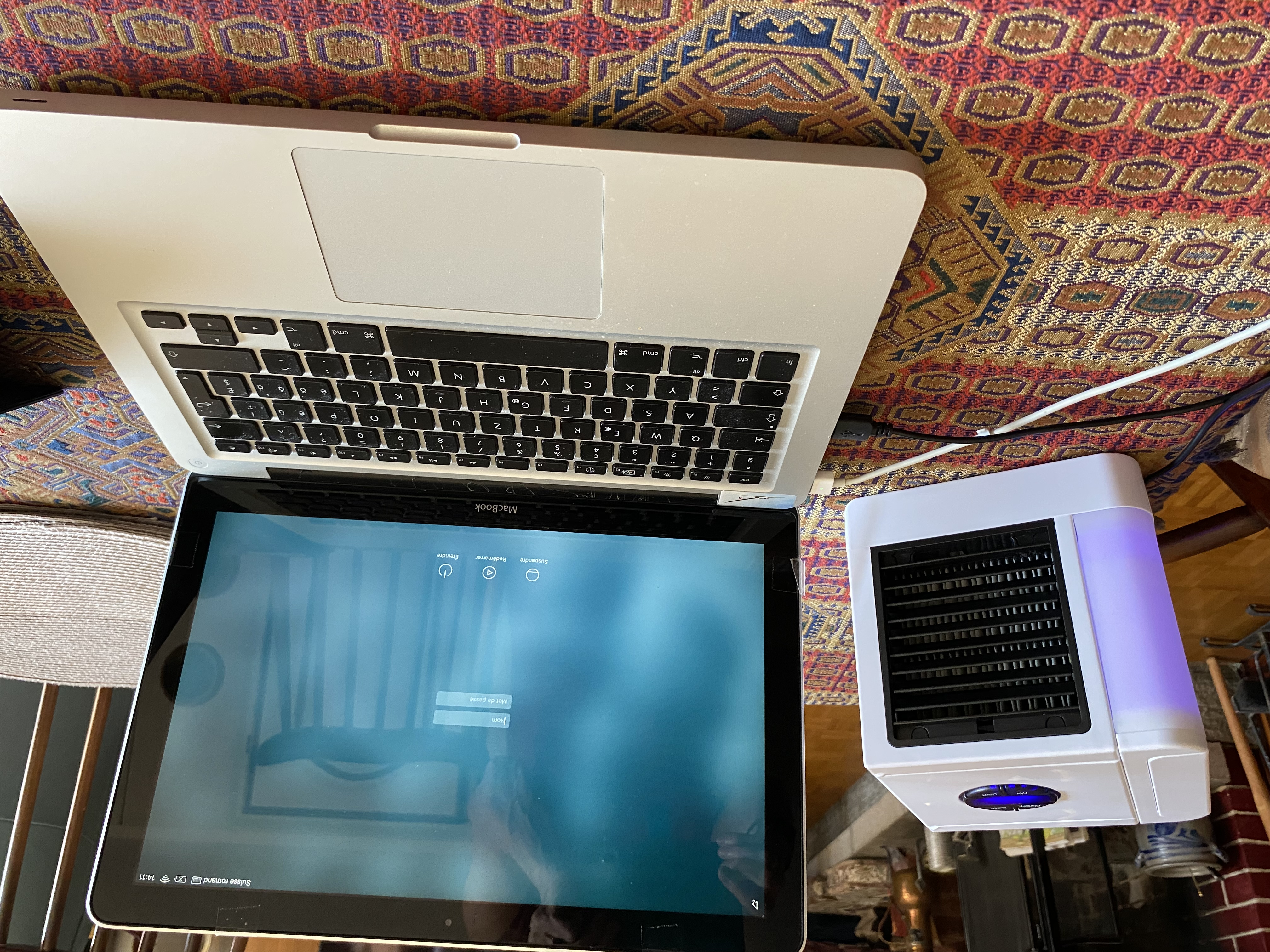 Bonjour les copinettes. Hier chaud chaud sur notre terrasse, mais tout le monde a bien supporté, avec plusieurs parasols nous étions tous à l'ombre. Rostbeef réussi, avec sauces faites Bi1 Bénédicta, pâté venant aussi du traiteur bi1, salade de quinoa faite par Diane, et diverses salades faites maison. J'éétais contrariée de faire tout se tralala pour MON anniversaire, j'aurais préféré mettre les pieds sous la table, mais tout compte fait je suis contente de pouvoir encore à 83 ans recevoir ma famille sans trop perdre les pédales en cuisine, Mes filles m'ont quand m^me aidées, mais reste toujours l'intendance, et les rangements. Nous subissons toutes la canicule, mais semble- t- il dans le nord il faisait un peu moins chaud. Quand au Sud ou Sud Ouest, chez BWA et Gigi (ne m'en voulez pas si je vous situe mal ) comme chez Pachtou belles "cuites" . Les nuits ont peine à se rafraîchir, heureusement nous avons une petite climatisation mobile qui aide a faire baisser la température de quelques degrés. Ainsi nous dormons mieux. J'ai trouvé u maxi bazar un petit cube refroidisseur par évaporation d'eau, super génial qui se branche sur une clé USB ou a votre ordinateur. Ce n'est pas un ventilateur qui brasse de l'air chaud.. il ne vaut env. 20 Euros. et surtout hyper pratique pour taper sur son ordi. |