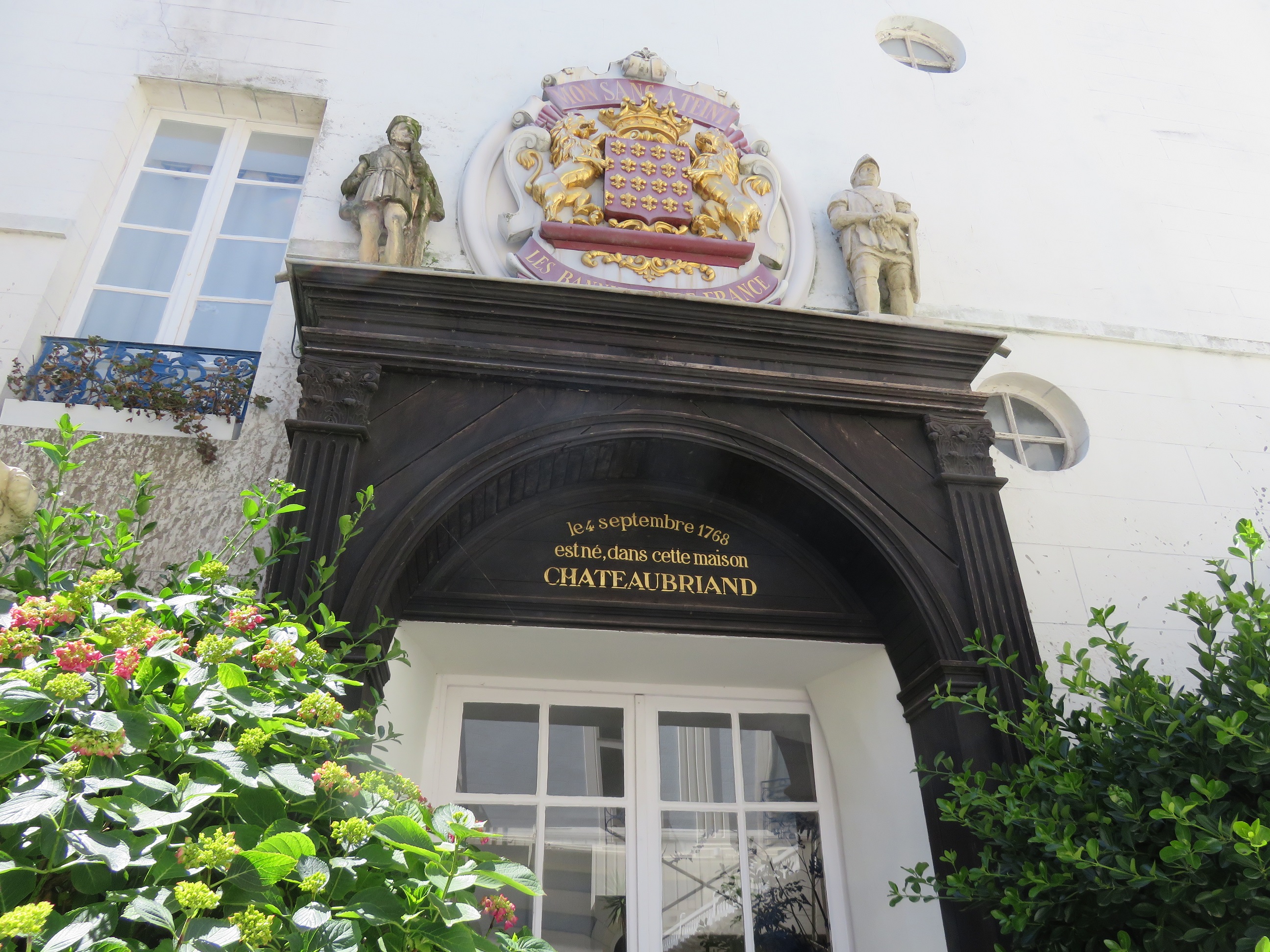 Bonjour les Minettes, Wahoo ! matinée qui coûte cher : médecin, pharmacie, courses et plein d'essence !!! C'est ce dernier le + onéreux. Côté médecin, rien de grave, pas de covid, mais comme je le pensais, une trachéite. Chez moi c'est ça, plus d'angine, mais un cran plus bas, le larynx. Donc je vais me transformer en NOUCHE, en commençant chaque journée qui vient avec une poignée de médocs au petit déj. Cortisonne, petit antibio, sirop pour la trachée, et surtout, et ça pendant 1 mois, vitamines et repos !!!! Il faut que je regarde s'il y a encore des centres de vaccinations...car je dois faire mon 4e rappel. jeudi pas de gym, pas assez en forme pour aller gigoter. J'irai au dernier cours le 16 pour souhaiter de bonnes vacances aux copines. DIDINE oui je voulais que le jardin soit en ordre, d'où un peu de fatigue, mais la cause de tout, c'est ce vent froid du dernier week end de mai, la veille de mon départ. J'ai eu froid, et terminé la journée du dimanche avec, chaussettes, pull, soupe chaude et bouillotte au lit !!! En ce moment alternance de soleil et nuages, et toujours ce vent. Mon cerisier et mes jardinières de fenêtres sont très secoués. Ce matin, en sortant de chez le médecin et de la pharmacie, bonne pluie. COCO non rien de grave, poumons nickels, pas d'infection. Elle se tient plus au niveau du nez, sinus. Tension impec. Normalement à la fin de la semaine, ça devrait être fini. Malgré tout repos et siestes obligatoires. Pour l'instant tu es entre les mains de la kiné, soulagement en vue, pour être d'attaque pour la couture. Ce matin le bonheur de retrouver des fruits au dessert, dans les hotels, souvent entremets (le moins pire) mais plutôt pâtisseries,.....après un repas je n'aime pas. MARTINE, pas de grand écart de cancan pour mon repassage, il y en a très peu. Au cabinet, le médecin était masqué....et moi aussi, mais à la pharmacie.....personne !!! ni personnel ni clients. GIGI le bonheur retrouvé avec une nuit correcte, pourvu qu'il y en ait d'autres. MANA oui, en ce moment ne pas sortir sans imper ou parapluie à portée de mains. Sous les nuages pas chaud, mais dès que le soleil apparaît, il y a un coup de chalumeau toride, pas étonnant qu'on s'enrhume. LISE prise de sang faite, pratique un médecin dans la famille. NOUCHE la pluie fait du bien aux jardins, Robert doit se régaler en voyant ses légumes en bonne forme. Mes haricots sortent bien, et mes oeillets d'inde reprennent "un peu" vie Bonne journée les minettes, je vais m'allonger. Fronton sur la maison natale de Chateaubriand à St Malo.