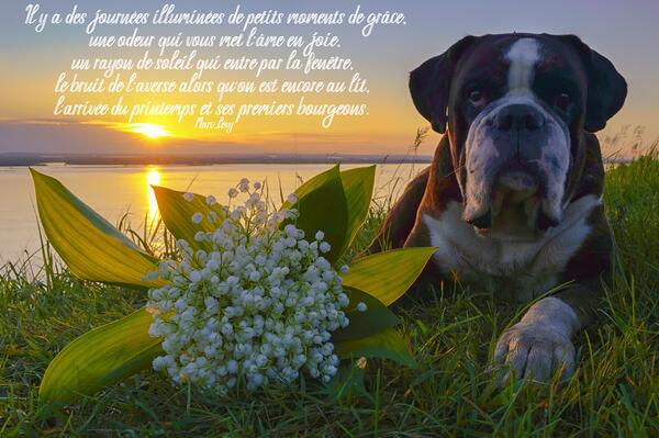 Bonjour les Filles, Du beau temps pour ce 1er mai, pour l'instant sans vent. Hier pas moyen de rester sur la terrasse, bien sous le soleil, mais dès qu'un nuage passait devant.....de la bise et glagla, obligée de rentrer. MANA de bons moments avec vos amis ; Passez toutes un bon dimanche. voici pour vous toutes quelques brins porte-bonheur, j'espère qu'ils seront efficaces. |