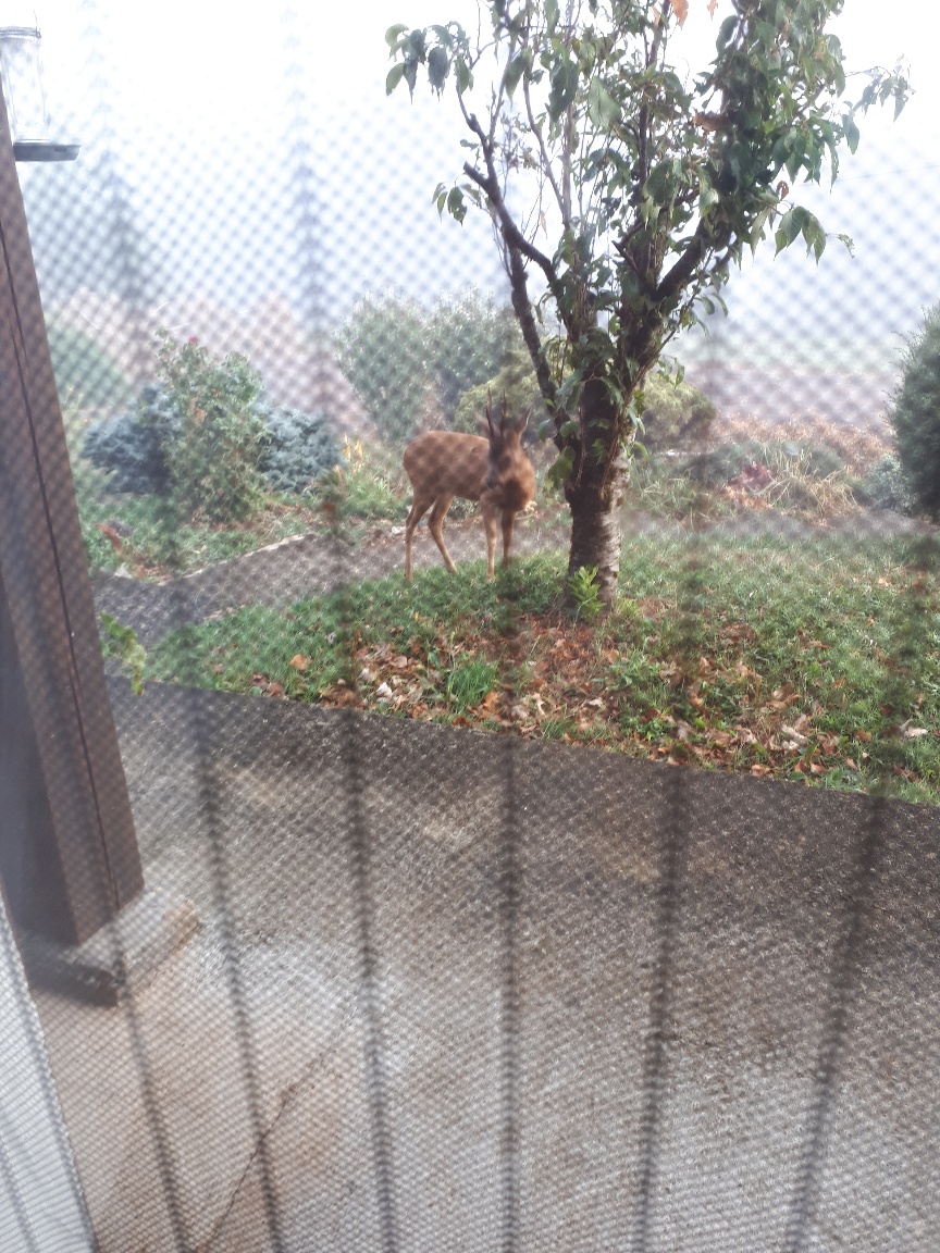 Bonjour les mamiesCe matin c'est gris et pas chaud, mais apparement pas de pluie.Hier il est tombé 10 cm dans le pluviométre ce n'est pas mal, la pelouse va reverdire un peu, car c'est trés sec, tout est cramé. Belle petite biche BWA dans ton jardin, tu habites prés de la forêt pour qu'elle se permette d'approcher ainsi.? Nouche merci pour l'info, j'ai déjà un devis 6000 euros, je n'arrive pas à savoir si c'est cher.Je voulais faire venir stannah, mais beaucoup me disent que c'est plus cher et pas mieux, demain j'ai une autre société qui va venir, et je verrai. PATCHOU, comme toi quand j'ai voulu me connecter "page inaxecible, et là maintenent ça marche. Je me prépare car je vais faire une marche ce matin avec des copains, car ces derniers temps pas beaucoup bougé avec la chaleur. Bonne journée à toutes |