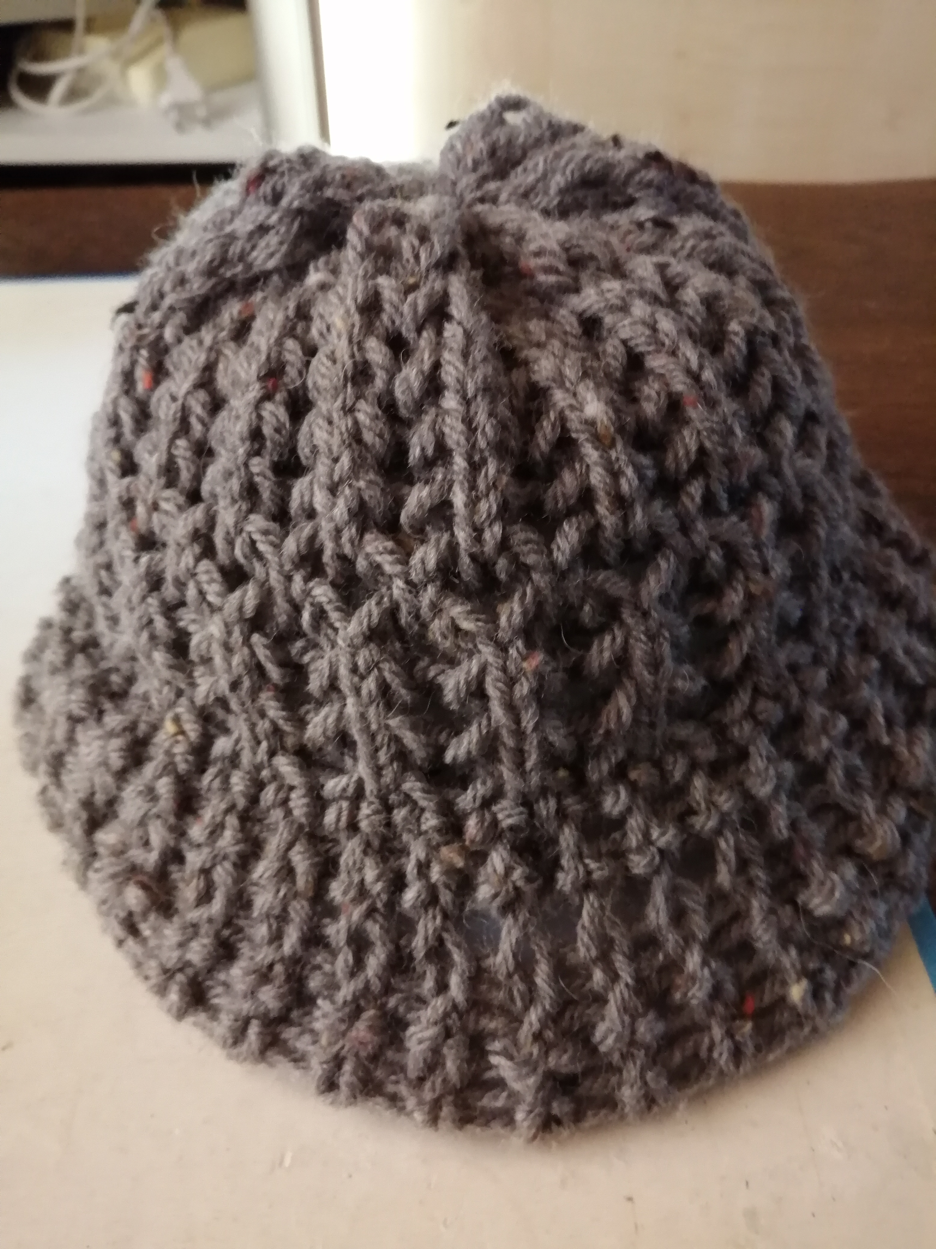 coucou les maminettes oh!! là le temps est vraiment incertain ce matin le soleil ne se montre pas encore ,hier journée a peu pres bonne j'ai bien seche les serviettes eponge (drap de bain) il y avait pas mal de vent ensuite j'ai dehoussée tous mes coussins du banc et des chaises de la tonnelle afin de les laver tout a ete remis en place hier soir ,ma petite apprentie tricotin la jeune fille qui est malade dont je vous avait parle est venue me voir elle a bien avancé dans son tour de cou ces jours ci elle tremble beaucoup moins et les petits sont venus egalement on les a garde un peu car les parents ont ete appele en urgence par des voisins a leur belle soeur qui a 2 chevaux et l'un d'entre eux etait blessé a la patte leur proprietaire sont en vacances et c'est les parents de steccy qui vont les nourrir et nettoyer leur boxe esperons que ce n'est pas une mechanceté car le portail de l'enclos etait fracturé !!! pourquoi s'en prendre a des animaux !!!!! PATCHOU hier j'ai reçue un texto d'ANNIE que tu as connue la pauvre a peine 5 mois apres le deces de son epoux d'une leucemie voilà que elle va aller a MINJOZ a besançon pour 3 seances de chimio elle a contracte un cancer de la peau elle qui a du mal a se remettre du cancer du pancreas tu as raison on ne devrait pas se plaindre pour un petit bobo ah!! quand le sort s'acharne bon là Michele ce jour est en repos que vais-je faire ce midi des salades des salades je commence a saturer je vais cuire un roti de porc avec des haricots verts et quelque patates vapeur du melon et concombre en entrée bien sur car les concombres on ne peut les congeler pour l'instant on en fait la distribution ça fait plaisir aux voisins et amis qui viennent nous voir c'est sûre des concombres poussés en pleine terre n'ont pas le même goût que ceux poussés sous serre parfois ils ne voient même pas la terre COCO c'est vrai que dimanche on ne manquat pas de gateaux 3 en tout mais il y a beaucoup de restes mais hier j'ai bien rit ma voisine avait invite ses cousins en me disant il y a des restes comme ça ils partiront mais hier dans la soirée j'ai vu arriver les cousins avec 2 boites de patisserie là je vais aller me doucher et mettre une lessive en route !!! BWA j'ai termine le chapeau au point godron au tricotin je l'ai as mal reussi et aussi le petit bonnet pour la petite LOUISE l'autre petite voisine qui vient d'avoir en MARS 2 ans egalement si ça veut bien fonctionner je vous en jint une photo bonne journée a toutes et gros bisous