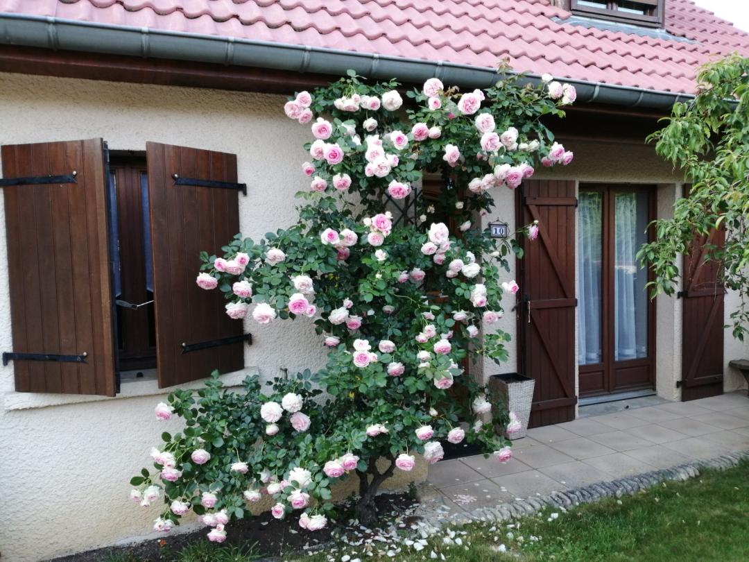 Bonjour les Copinettes Pas de repas sur la terrasse aujourd'hui, ciel gris et petite pluie. Coco bon retour chez toi ! Nouche jolie la façade avec ce beau rosier qui prend toutes ses aises, encore une bonne soirée avec tes petits voisins. Bon début de semaine à vous toutes. |