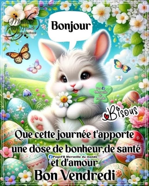 Bonjour à toutes, Soleil présent mais pas très chaud j'ai été surprise en sortant ouvrir le portail.........NOUCHE je pense que tout le monde va mieux, un bon rétablissement à Michelle et des Pâques avec tes enfants super cela va vous faire du bien.....Pour nous Sandrine demain matin et les filles dimanche travail oblige |