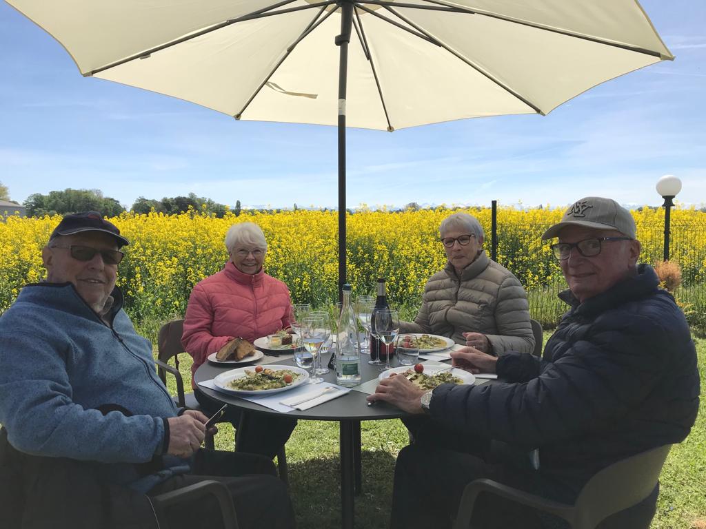 Bonsoir copinettes, Un repas en terrasse pour la fête des mères, un peu frisquet mais agréable de mettre les pieds sous la table avec mari , belle sœur et beau frère. Beau we nous en avons profité pour rester dehors, tout rentré ce soir car la ☔️ viendra arroser pdt la nuit. Bisous à vous ttes |